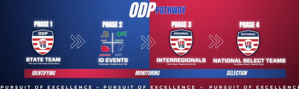 The Olympic Development Program (commonly referred to as “ODP”) is an identification system linked to the United States Soccer Federation and US Youth Soccer. The program offers players a pathway to representing the South Region and U.S. Youth National Teams. Originally established in 1977, ODP was the first program in the country designed to identify potential youth national team players. While the core principals of identifying and developing talent for the national team have not changed over the years, ODP has evolved to also provide expanded opportunities for player exposure to college, semi-professional, and professional scouts.